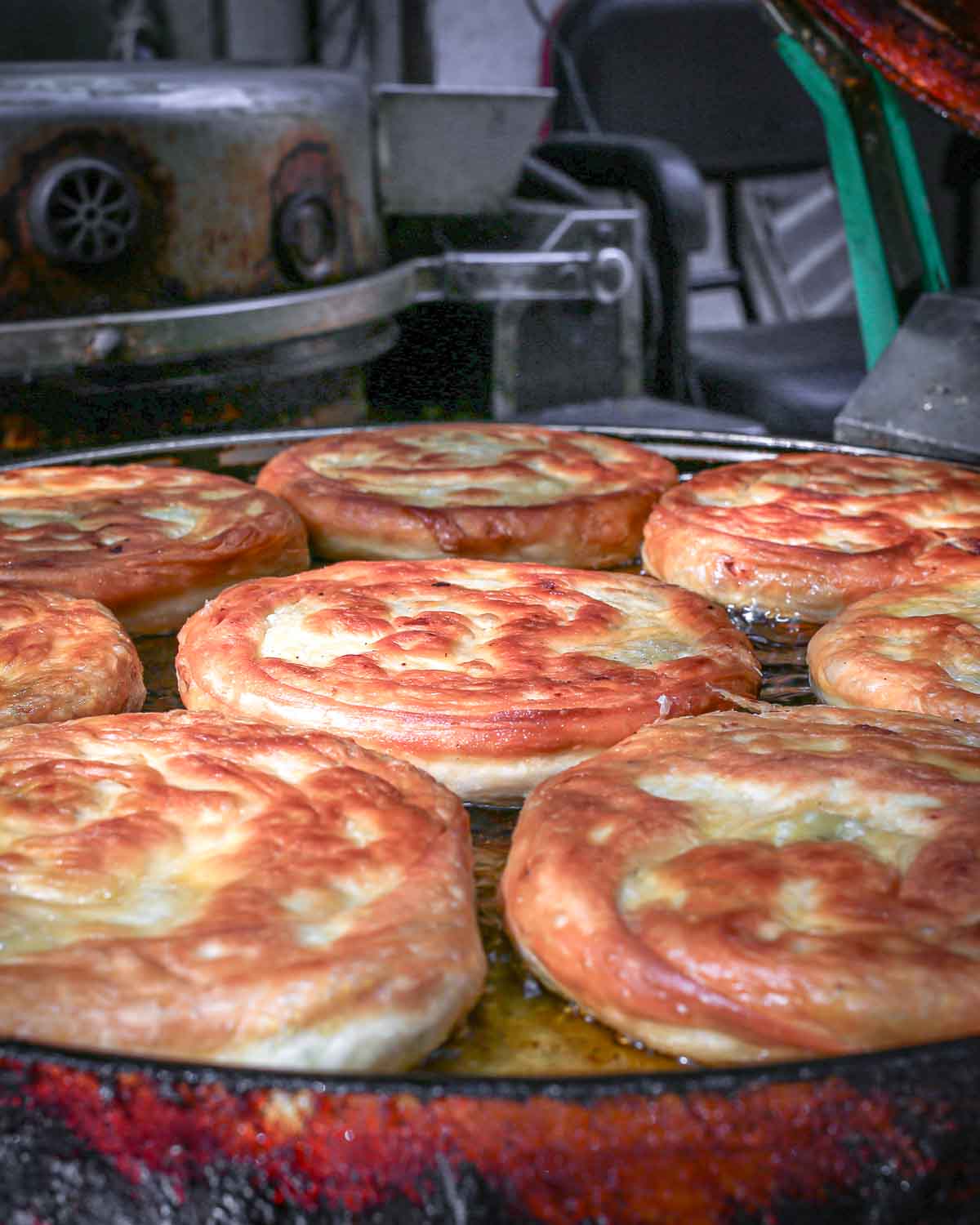 This husband and wife team have been feeding their neighbors Xian’s famous sour dumplings for decades. Filled with meat, the dumplings are characterized by their tangy broth infused with Chinese black vinegar, soy sauce, garlic, and chili oil. Give them a big smile and they may even let you try making some of your own!