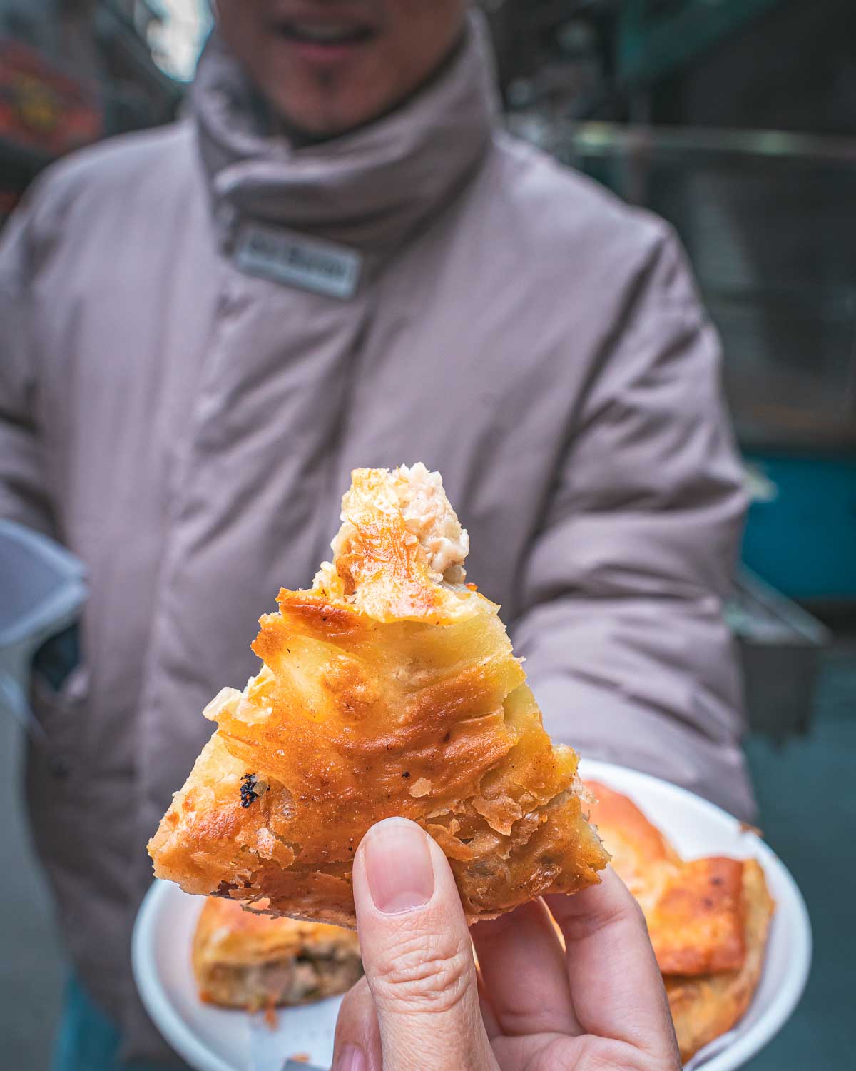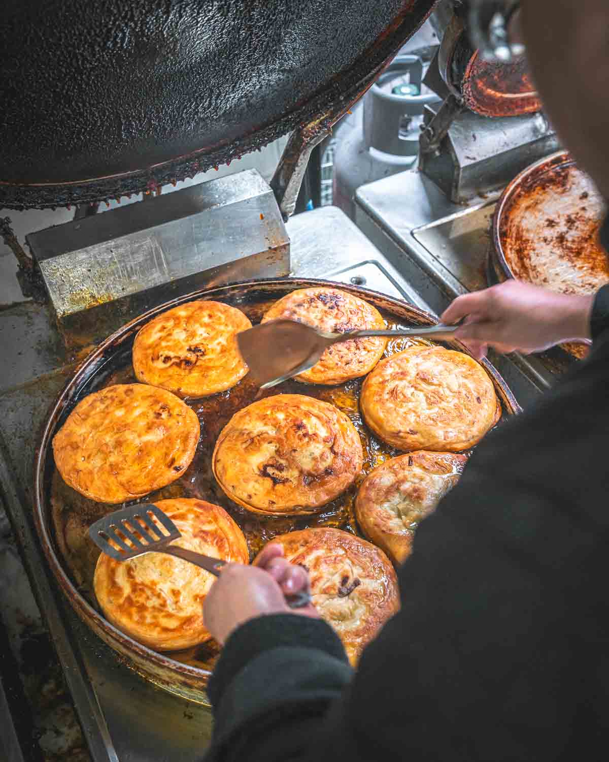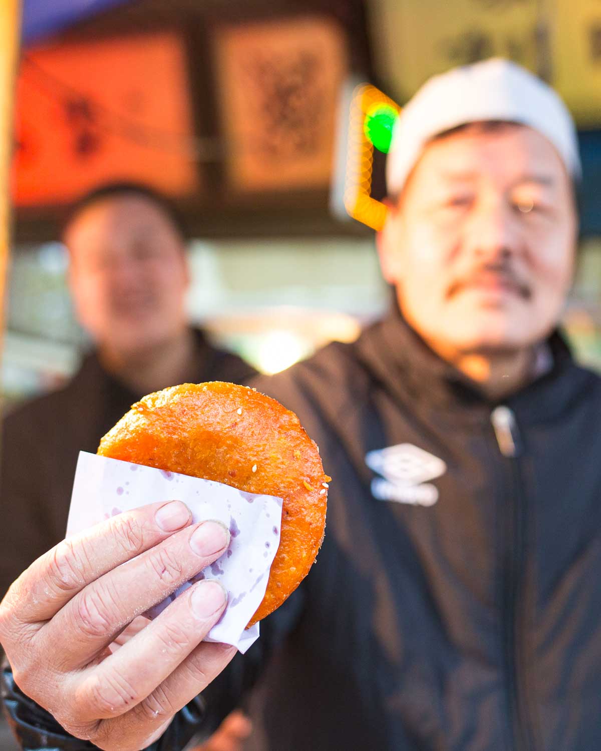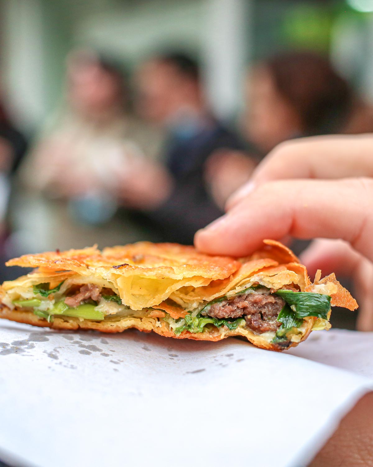 Our first stop is equally incredible to watch and taste. These savory beef pancakes are seasoned with spices like fennel, cumin, and Sichuan peppercorn, and are rolled up and fried resulting in flaky croissant-like layers. Always made fresh every morning until sold out!