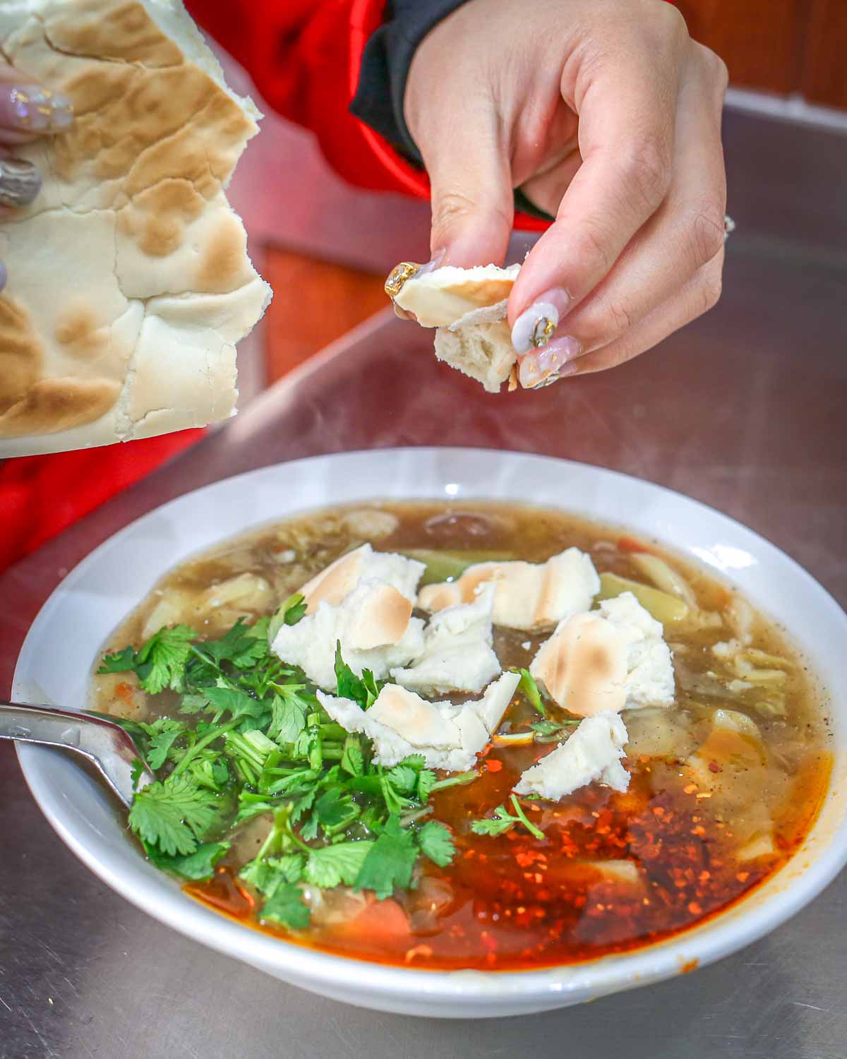 Get a bowl of Xian’s favorite breakfast: a thick soup made with blend of tangy vinegar, spicy chili, and rich broth – then filled with meatballs and whatever root vegetables are available. Garnished with fresh cilantro, a dollop of homemade chili sauce, and some local pita bread, this is a truly local experience.