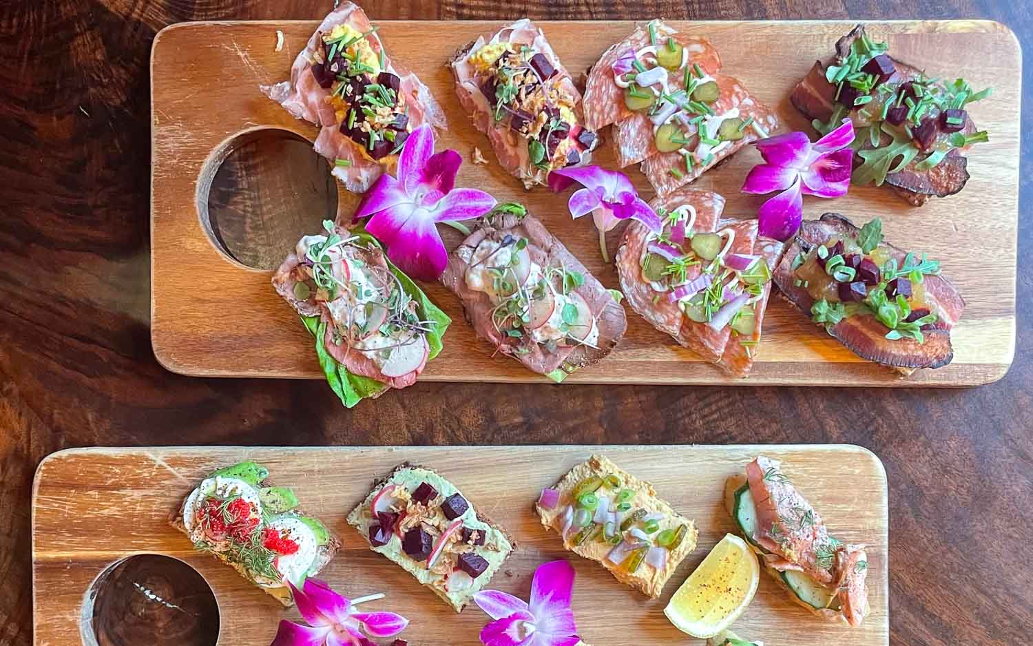 All curated wine tastings, and paired small bites, at winery tasting rooms and a wine bar.